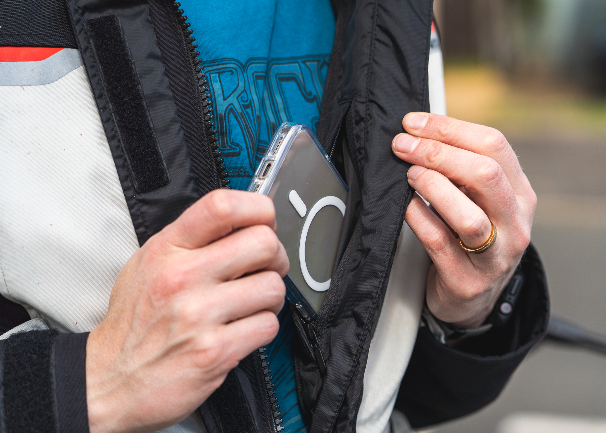 The short and long connection zips pair well with the matching Oxford Ladies Mondial 2.0 trousers and do a great job of sealing out draughts around the waist. I’ve also worn the jacket with a Dainese airbag vest underneath — leaving it unzipped from the trousers to give the vest room to deploy. It fits fine that way in warmer months, but I wouldn’t get an airbag under it as well as my usual winter layers.