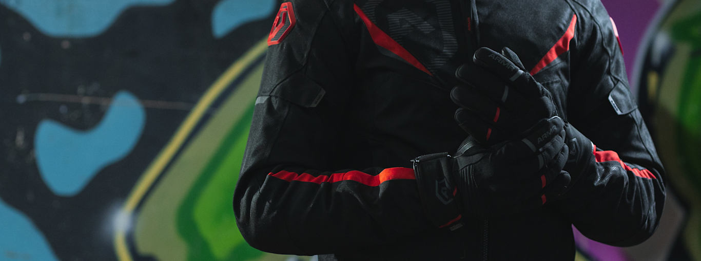 A full range of leather and textile motorcycle gloves from ARMR