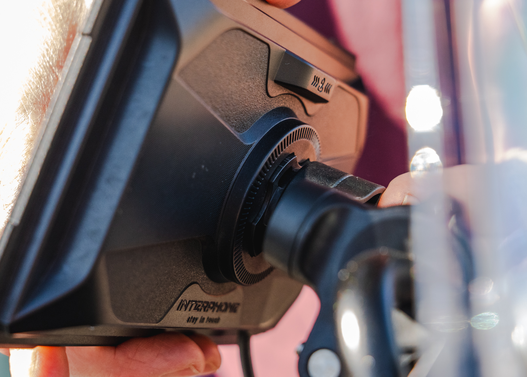 In the box you get a handlebar mount that uses Interphone’s Quiklox system, which means there are plenty of alternative mounts available to buy if the supplied one doesn’t suit your bike. Once fitted, the SYNC 70 pushes on and locks into place with a clockwise twist.