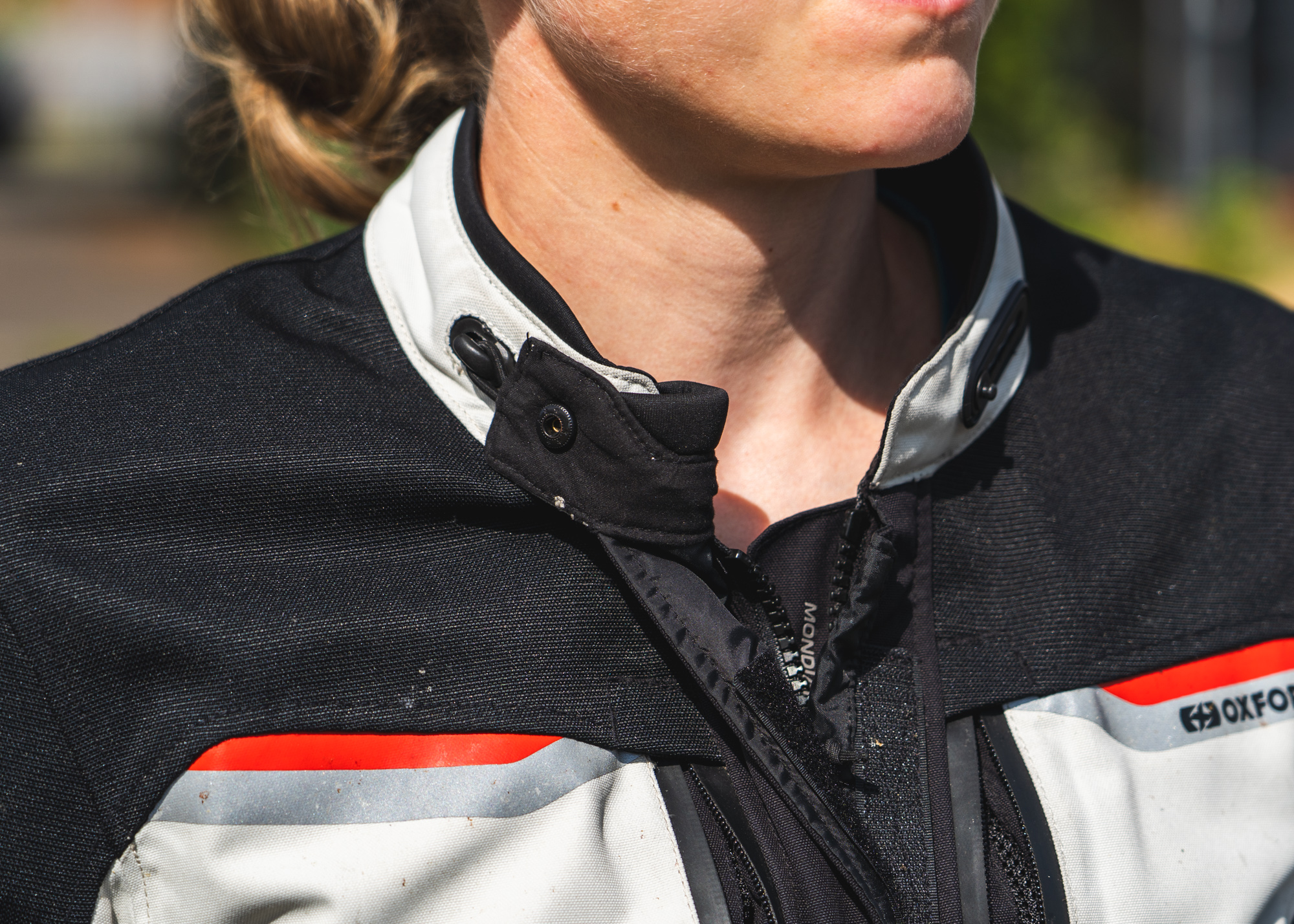 The short and long connection zips pair well with the matching Oxford Ladies Mondial 2.0 trousers and do a great job of sealing out draughts around the waist. I’ve also worn the jacket with a Dainese airbag vest underneath — leaving it unzipped from the trousers to give the vest room to deploy. It fits fine that way in warmer months, but I wouldn’t get an airbag under it as well as my usual winter layers.