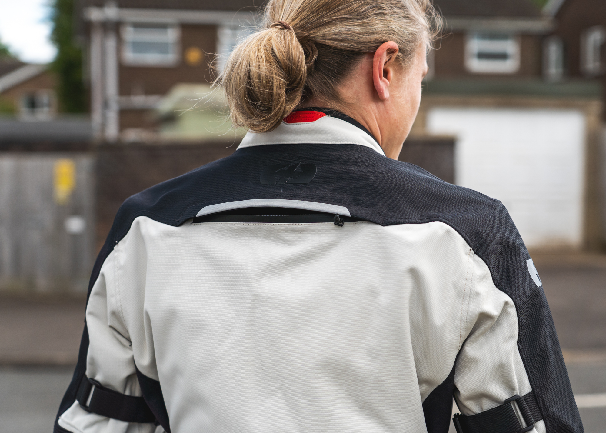 The jacket comes with CE Level 2 armour at the shoulders and elbows, and holds an overall CE rating of A. There’s no chest or back protector fitted as standard, but I wore mine with an Oxford back protector or an airbag vest depending on the ride. I wouldn’t wear it without one or the other.